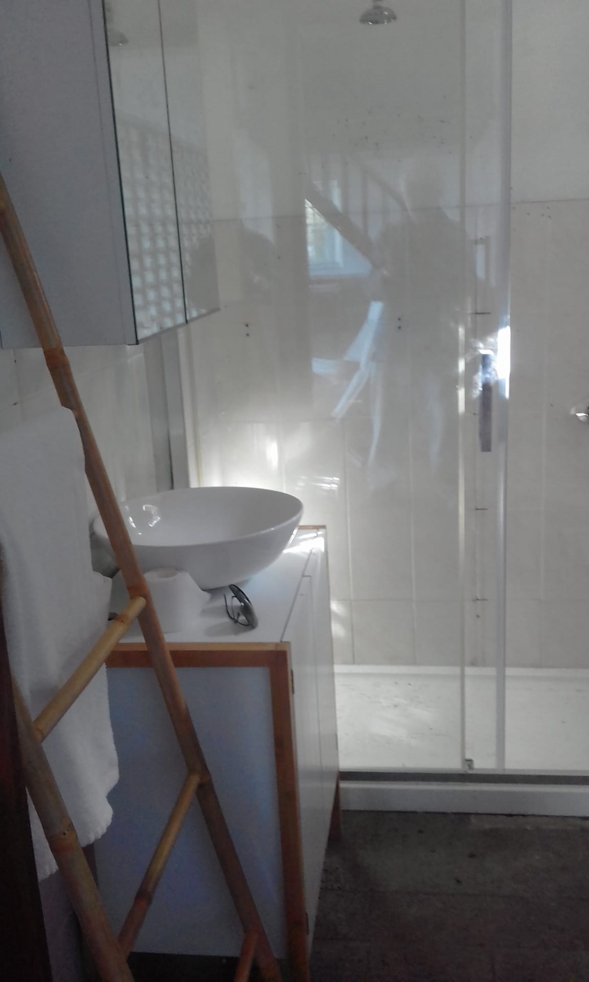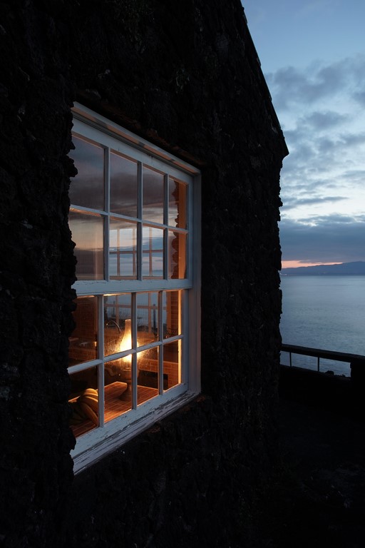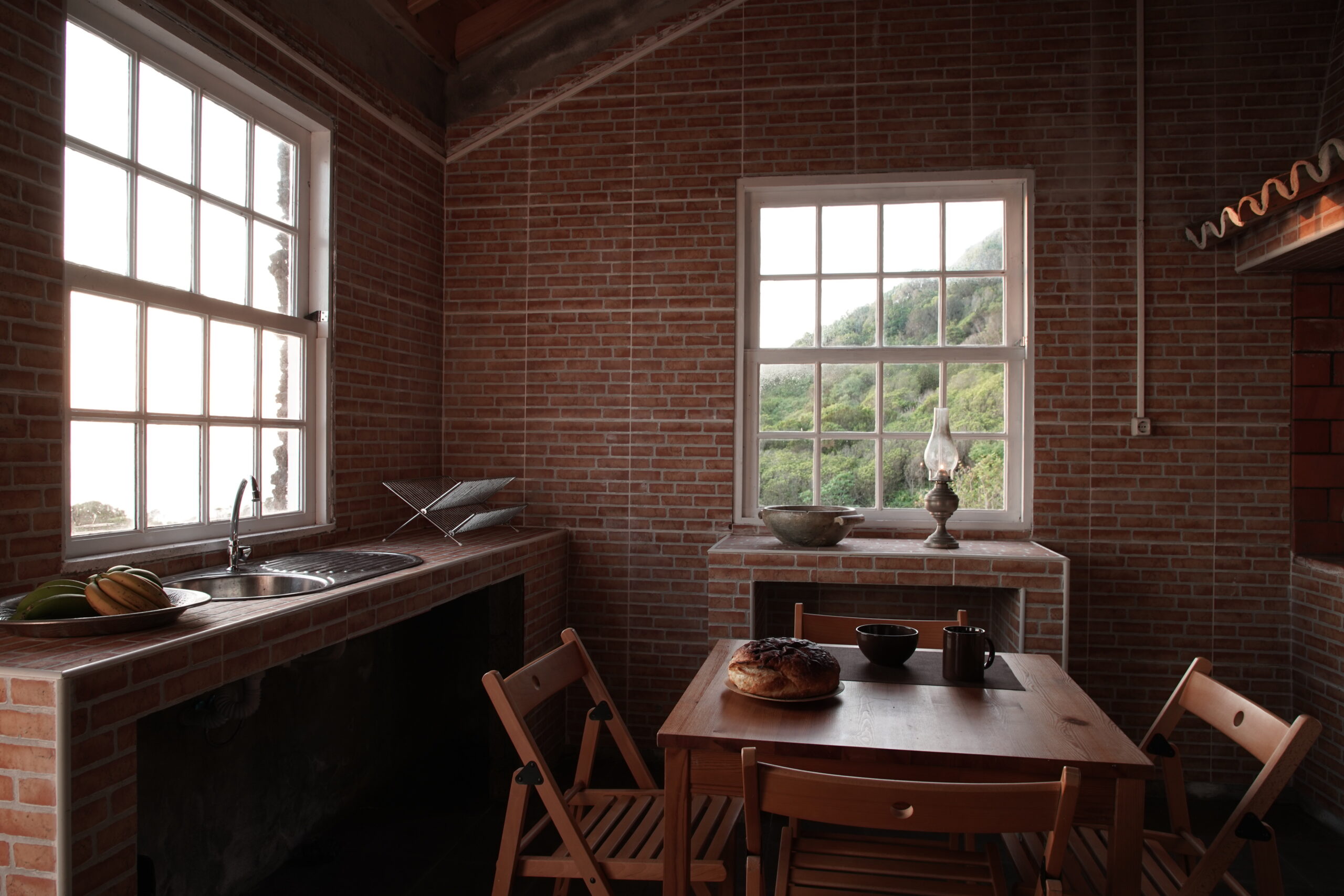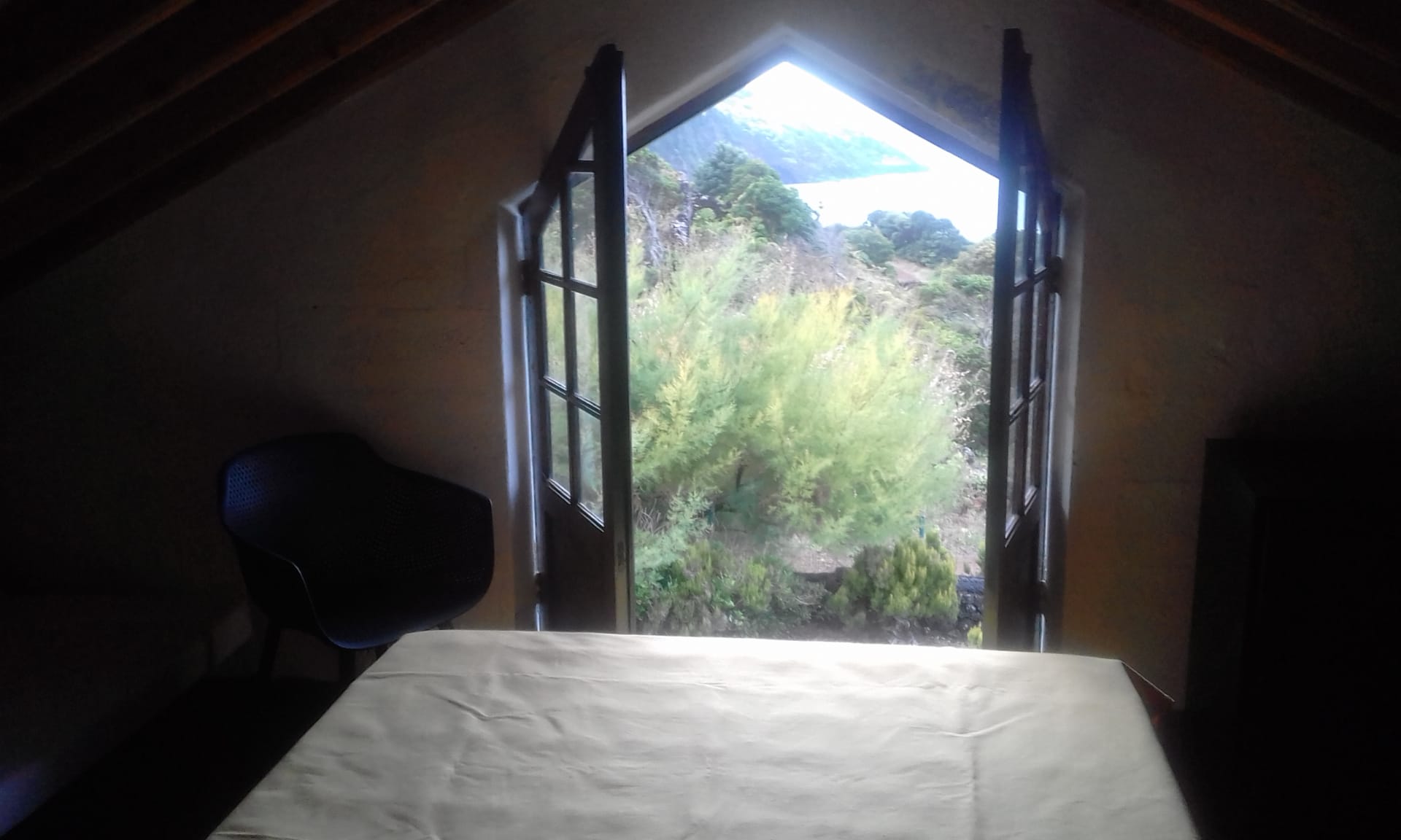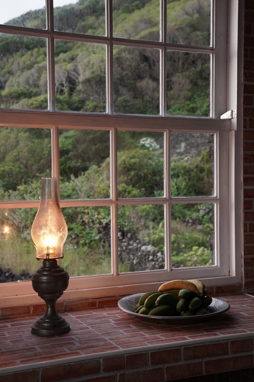 Water is provided by rain (collected in a rainwater tank and heated by gas for the bathroom). There is no electricity, petrol lamps and candles being used for light after sunset.