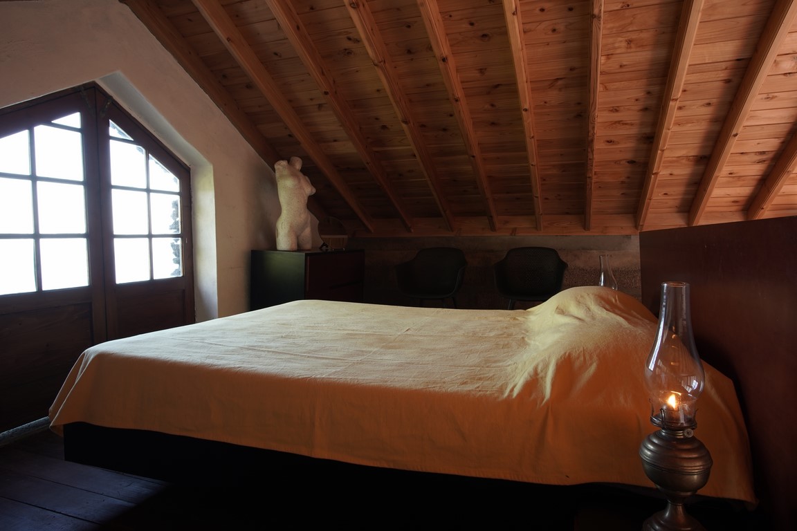 Perched over a lava cliff bay surrounded by vineyards in the island northern coast, Bay Lodge (a generous open space studio for two) offers an unforgettable experience : a mix of sophisticated design and slow life in nature, according to nothing but the sun light and the sound of waves nearby.